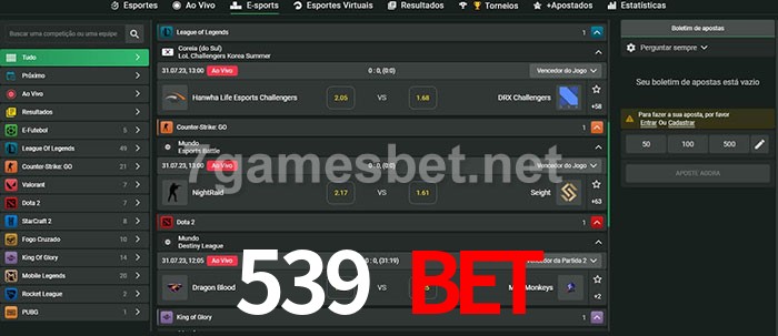 O 539 bet oferece uma grande seleção de opções de apostas em e-sports com probabilidades competitivas